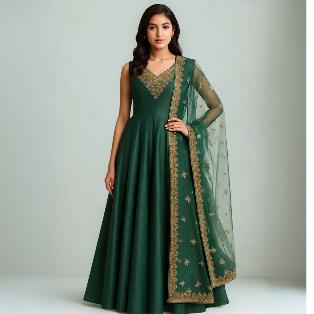 Dark Green Embroidered Anarkali Gown with Dupatta