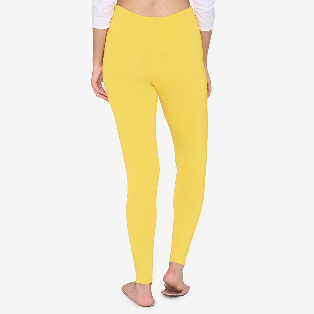 Empire Yellow Cotton Ankle-Length Leggings for Women