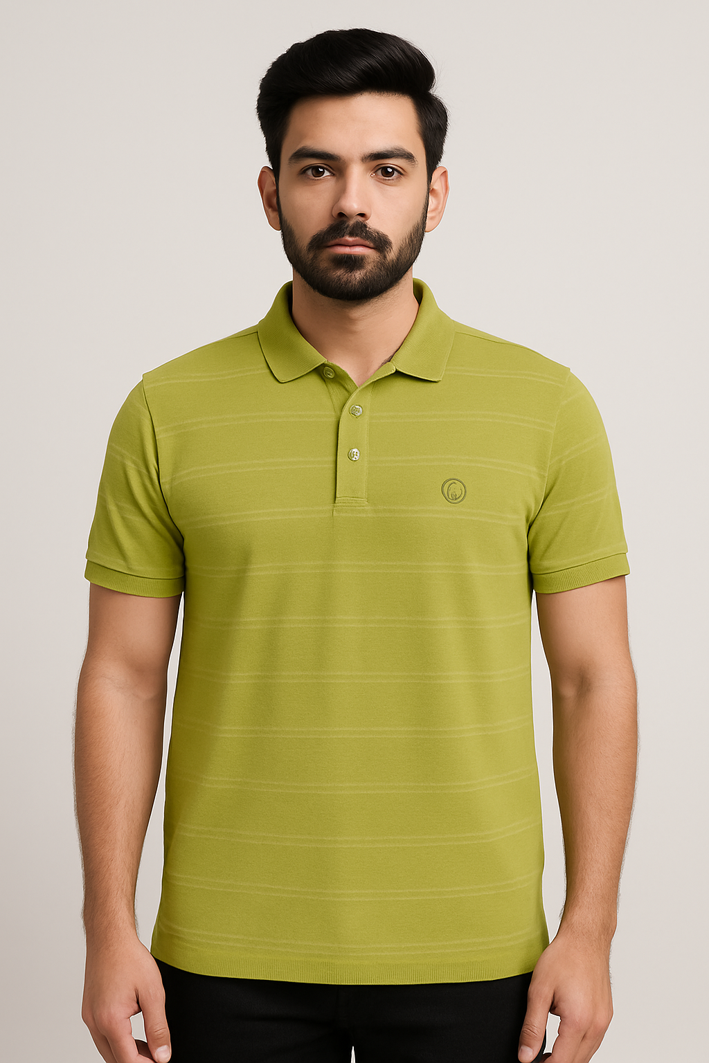 - Name:Men’s Light Olive Green Striped Polo T-Shirt