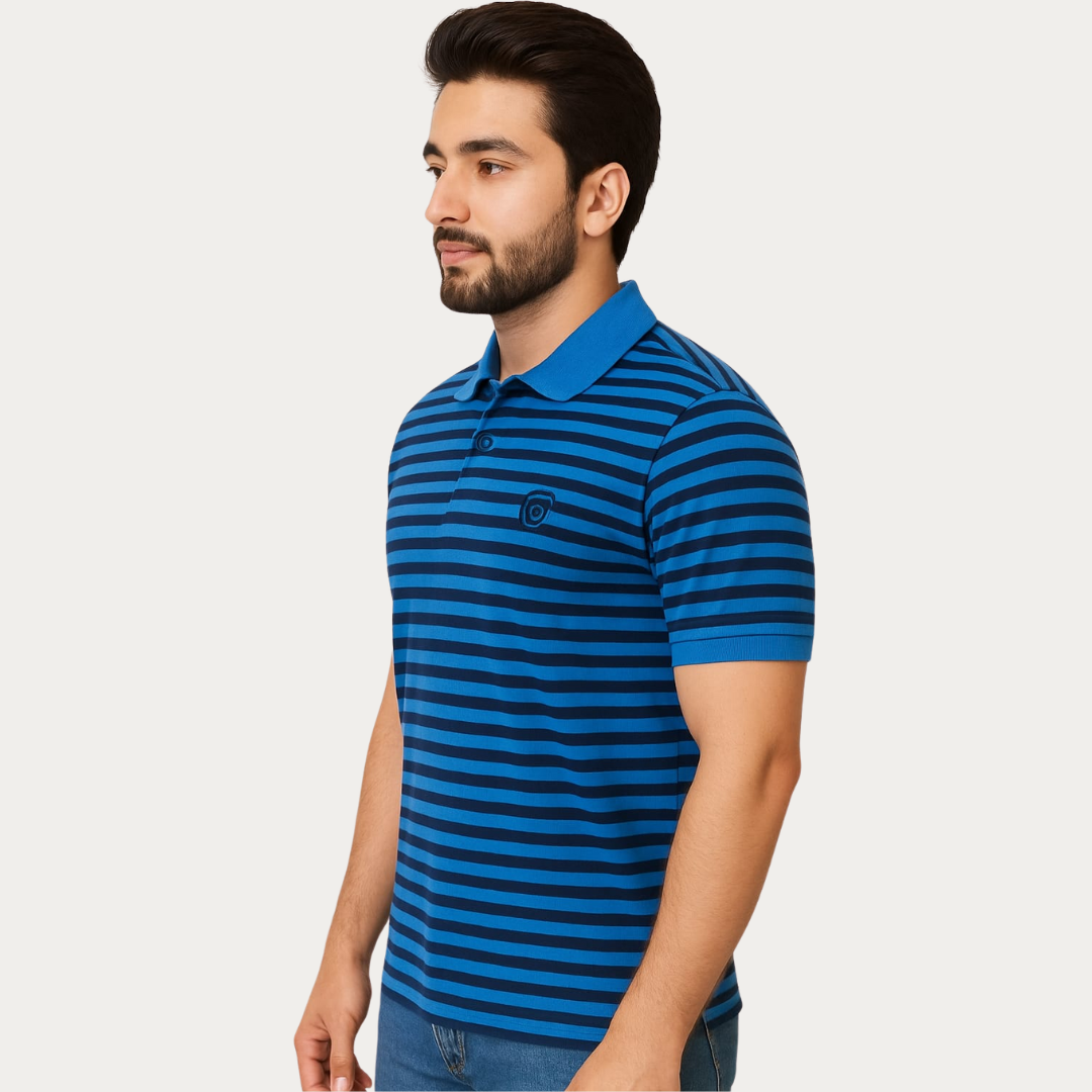 - Name:Men’s Navy & Blue Striped Polo T-Shirt