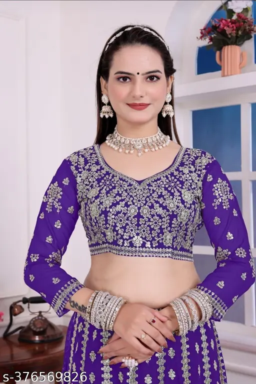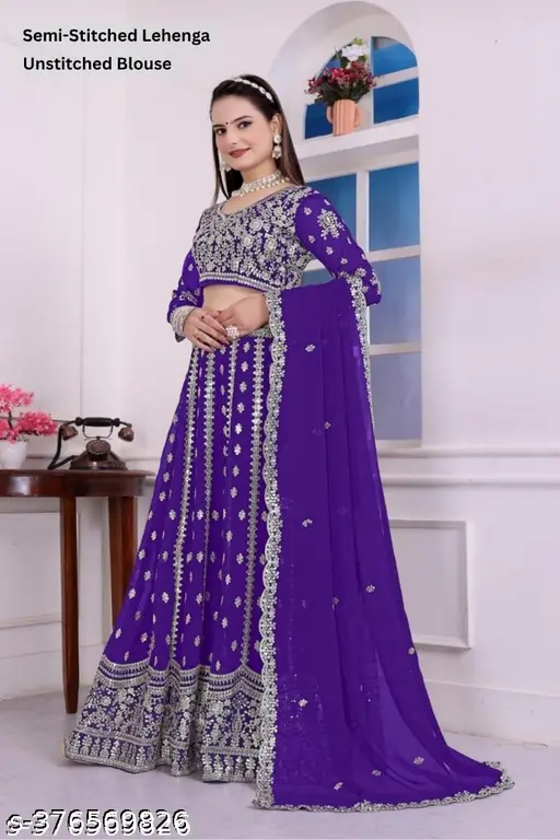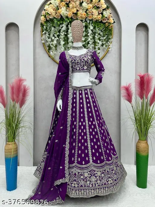 Name : Royal Purple Embroidered Lehenga Set for Women